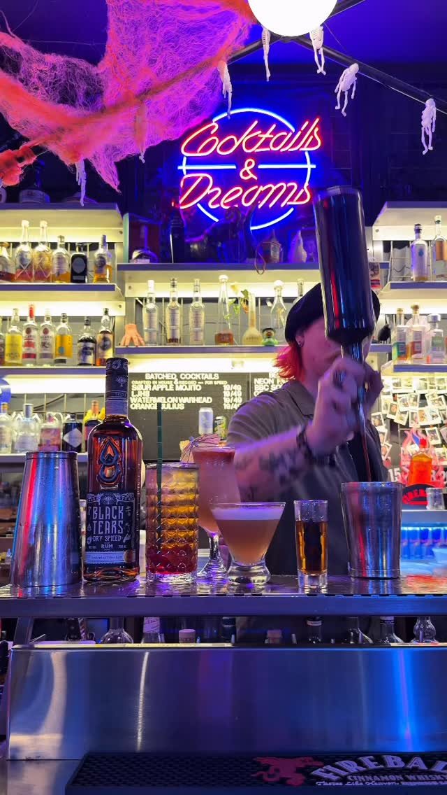 We shake seriously playful cocktails. Signature drink? Neon Margarita — an electric blue mix of tequila, fresh lime, and agave.