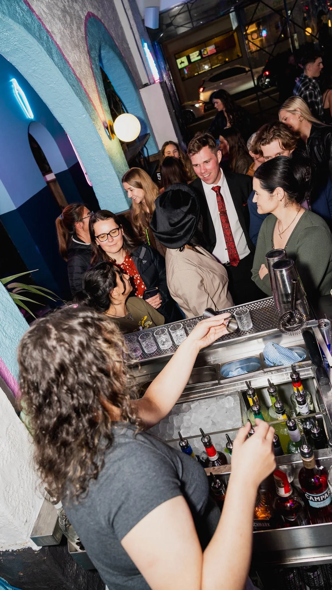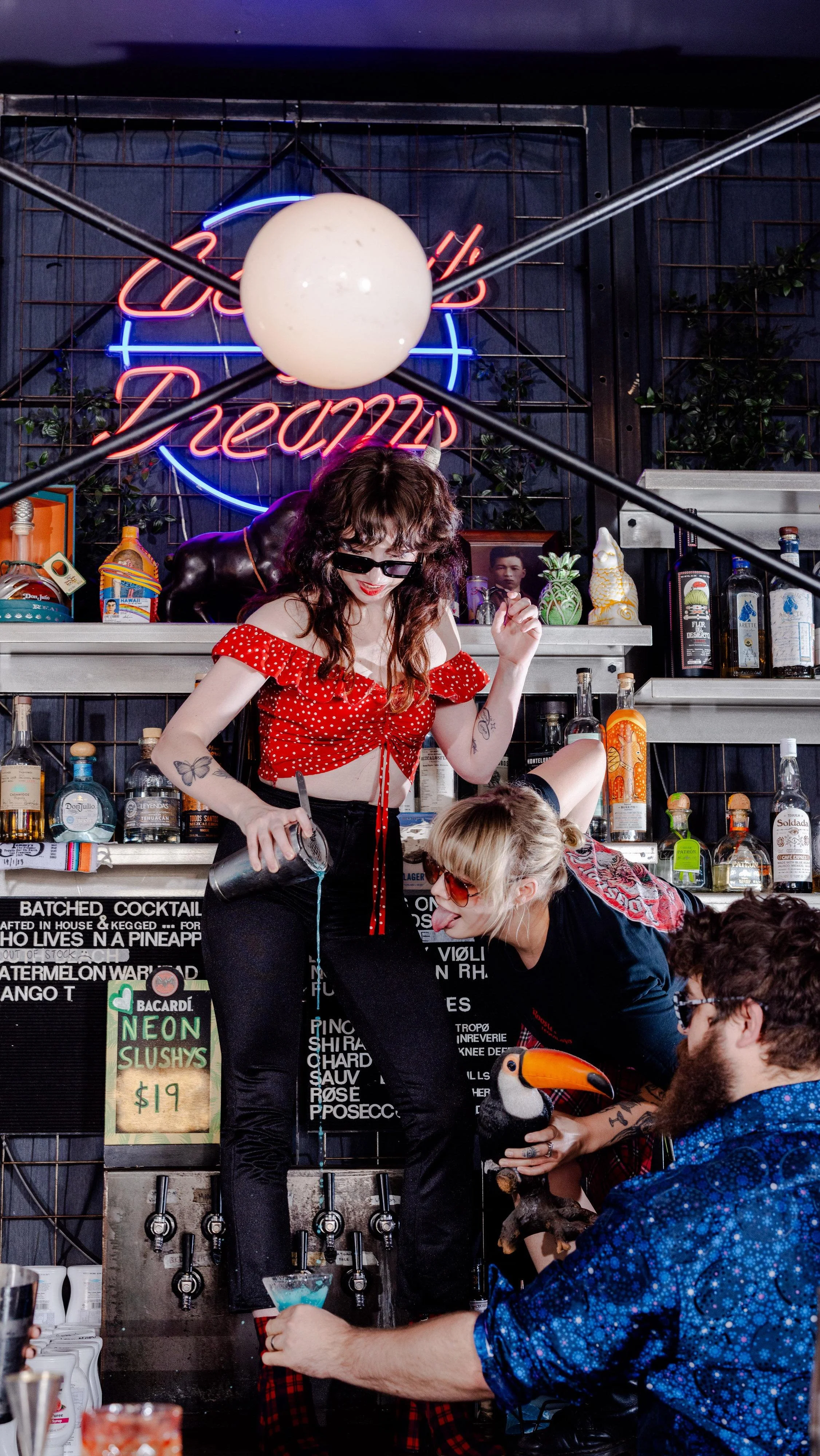 We shake seriously playful cocktails. Signature drink? Neon Margarita — an electric blue mix of tequila, fresh lime, and agave.
